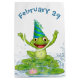 Une mignonne grenouille verte saute dans l'eau avec un casquette de fête d'anniversaire pour l'anniversaire de l'année bissextile. Le texte peut être modifié.