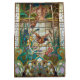 Image d'un vitrail offrant une vue sur les canards colverts dans un étang avec des crapets et des iris.