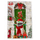 Carlin Chien Noël assis à l'extérieur de la maison décorée avec la couronne de Noël, le sapin de Noël est une idée cadeau de Noël parfait pour les amoureux de les chiens.