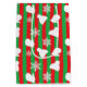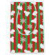Sac de Noël avec arrière - plan rouge et vert, mitaines blanches, casquettes et flocons de neige.