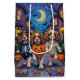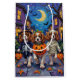L'adorable Roi Cavalier Charles Spaniels habillés de costumes d'Halloween ludiques portent des seaux citrouilles tout en trompant ou en traitant sous le ciel illuminé par la lune. Ce design festif met en valeur le manteau soyeux, l’expression douce et la personnalité affectueuse de la race, capturant parfaitement l’atmosphère éffrayante et amusante de la nuit d’Halloween. Une charmante fête pour les amoureux de les chiens comme pour les fans d'Halloween.
