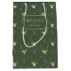 Ce sac cadeau est doté d'un motif branché de silhouettes de tête de cerf avec des bois incurvés, des flèches stylisées et de minuscules flocons de neige dans un effet texturé dans les tons vert mousse sur un arrière - plan vert foncé. Un texte optionnel "Joyeux Fêtes" et un étiquette ont été fournis pour ajouter votre nom et/ou un autre texte. Faites une recherche ID861 à ID864 pour voir d'autres options de couleurs et d'autres produits dans cet ensemble moderne de design de Noël.