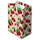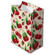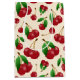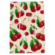 Sac cadeau motif moyen à cerises mignonnes avec cerises jumelées et simples avec tiges intactes et feuilles verts comme si juste cueilli à partir du cerisier - l'arrière - plan ivoire est personnalisable - par katz_d_zynes