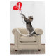 Tabby cat debout sur une chaise en cuir beige jouant avec un ballon rouge pour 70ème anniversaire. L'âge d'anniversaire peut être changé.
