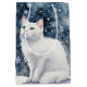 Sac Cadeau Moyen Chat blanc de Noël dans les flocons de neige