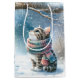Sac Cadeau Moyen Chaton de Noël portant une écharpe d'hiver