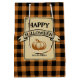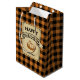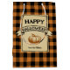 heureux halloween buffalo orange et noir plaid motif en style étiquette apothecaire avec texte personnalisé que vous pouvez facilement remplir. Joyeuses fêtes !