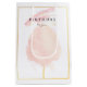 Cadre doré élégant et élégant avec un bonbon de coton d'aquarelle rose et un trait de peinture rose avec un joyeux souhait d'anniversaire. Luxueux design d'art d'anniversaire. Personnalisez en changeant le texte ou la personnaliser pour ajouter votre propre touche.
