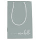 Sac Cadeau Moyen Chic Vert Sage Monogramme Nom Script