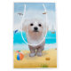 Le chien mignon assis sur la plage est une idée cadeau parfaite pour quelqu'un qui aime cette race de chien.