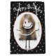 Femme à crosse mignonne avec cheveux blonds, baskets, robe pois de pois et bouquet de marguerite sur motif pois noir et blanc. Le texte est modifiable.