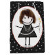 Jolie figurine en bâton avec cheveux, baskets, robe pois de pois, et bouquet de marguerite sur motif pois noir et blanc. Peut être utilisé pour un anniversaire.