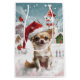 Ce design festif reflète l'esprit joyeux de la période des fêtes, avec un adorable petit portant un chapeau de Père Noël. Le chien est niché dans un pays des merveilles hivernales, avec un bonhomme de neige, un sapin de Noël décoré et des cadeaux joliment emballés. Les flocons de neige tombent doucement, ajoutant une touche magique à la scène, tandis que les couleurs vives des décorations de vacances créent une atmosphère chaleureuse et joyeuse.