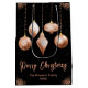 Celebrate the season in style with this elegant black Christmas gift bag featuring five rose gold hanging ornaments, scattered golden stars, and customizable text. Add your family name and year for a personal touch that elevates any holiday gift. Perfect for festive packaging, party favors, or under-the-tree presentation.