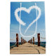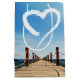Un pont en bois - un chemin sans fin vers l'océan avec un coeur dans le ciel, fait de nuages.