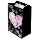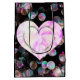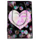 Dites-leur qu'ils font danser votre coeur avec ce coeur joli, romantique, flottant parmi des bulles de parties scintillant et luminescentes sur un arrière - plan noir.