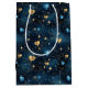 Sac Cadeau Moyen Coeurs cosmiques élégants en bleu et or