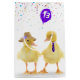 Un mignon couple de canard jaune flou sur un arrière - plan blanc avec un ballon violet de 13e anniversaire. La couleur Arrière - plan peut être modifiée. L'âge peut être changé.