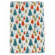 Red, gold, green, and blue stylized trees on a snowy background makes a festive and cheerful gift bag for the holidays.