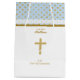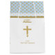 Bleu Communion avec Pois d'or. Ce magnifique et élégant design de la Première Sainte Communion est présenté dans un point de polka doré et arrière - plan bleu avec une délicate croix dorée. Chérissez les grands souvenirs de la première communion sainte de votre enfant avec ce magnifique design. Consultez les accessoires, la papeterie et les cadeaux de communion de la Première Sainte Communion correspondants.