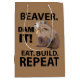 Eat Build Repeat Funny Beaver Animal Medium Cadeau Sac conçu par Nisha Prabhu. Avec drôle animal de castor mignon avec la typographie joueuse ''Barrage de castor IT Manger Construire à nouveau ''. Obtenez ce sac cadeau hilarant "Eat Build Repeat" avec un design de castor amusant! Parfait pour tout amoureux des animaux ou passionné de nature. Ce sac cadeau de taille moyenne est idéal pour les anniversaires, les vacances ou toute occasion spéciale. Ajoutez un peu de rire à votre cadeau avec ce design adorable et décalé. Commandez aujourd'hui !