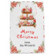 Ce sac cadeau amusant et festif peut être personnalisé avec votre nom, relation ou titre. Il dispose d'un stand de gâteau aquarelle avec des biscuits de pain d'épices, des macarons, des bonbons, du cacao chaud et une théière. Dans les coins sont de belles fleurs de poinsettia rouges. Le texte combine écriture manuscrite et polices sans serif pour un look élégant et moderne. C'est parfait pour les cadeaux de Noël et les faveurs festives.