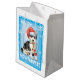 Célébrez la saison des vacances avec un présent dans ce sac mignon de cadeau décoré d'un chiot mignon de chien de traîneau sibérien utilisant un casquette et une écharpe de Père Noël parmi des flocons de neige et les mots, Howlidays heureux ! Grande idée de cadeau pour la famille et les amis Enroué-affectueux.
