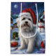 Ce design festif reflète l'esprit joyeux de la période des fêtes, avec un adorable petit portant un chapeau de Père Noël. Le chien est niché dans un pays des merveilles hivernales, avec un bonhomme de neige, un sapin de Noël décoré et des cadeaux joliment emballés. Les flocons de neige tombent doucement, ajoutant une touche magique à la scène, tandis que les couleurs vives des décorations de vacances créent une atmosphère chaleureuse et joyeuse.