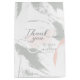 Merci à votre mariage ou à vos invités avec ces sacs cadeaux 7" x 4,5" x 10" avec le salut, "Merci", en grandes lettres grises sur un design abstrait aquarelle floral en bleu doux, blanc et sauge avec des espaces réservés pour les prénoms du couple mariage et la date mariage.