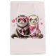 Sac cadeau avec une jolie illustration. Une paire de loutres en vêtements rose. Portant des chemises rayées, l'une portant une cravate et l'autre portant un arc. Entouré de coeurs d'amour.