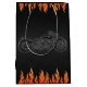 Sac Cadeau Moyen Cuir noir flammes orange moto motard fête