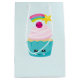 Sac Cadeau Moyen Cupcake bleu mignon avec visage Kawaii