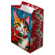 A sweet Christmas gift bag with a tabby and Poinsettia flower.