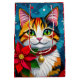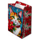 Sac Cadeau Moyen Cute Tabby Cat and Poinsettia Christmas