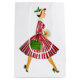 Noël comme il ressemblait dans les années 1950 avec cette œuvre d'art rétro d'une dame tout habillée d'un chapeau et d'une robe à jupe ample en rouge et vert scintillant.