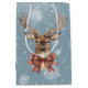Sac Cadeau Moyen Deer With Plaid Bow Christmas Snow Falling