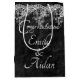 Bordure en dentelle blanche sur texture en cuir noir avec nom de mariée et de mariée. Les noms peuvent être modifiés ou supprimés.