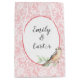 Elégant design dentelle blanche avec robin aquarelle sur brindille feuille. Les noms d'arrière - plan rose vierge et les noms de mariés sont modifiables. Peut être utilisé pour mariage ou anniversaire.