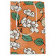 Motif de fleurs blanches avec feuilles verts sur arrière - plan orange