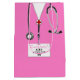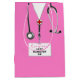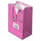 Sacoche-cadeau d'infirmière créative avec gommages d'hôpital rose, stéthoscope et grands fêtes. Pour personnaliser modifier le texte pour ajouter le nom de la diplômée de l'école de soins infirmiers.