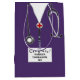 Conception de sacs-cadeaux avec gomme à l'hôpital violet et art stéthoscope. Modifier le texte pour ajouter le nom du médecin, de l'assistant médical ou de l'infirmière.