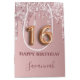 Élégant, classique, glamour et girly pour une Soirée Sweet 16, 16e anniversaire. Un arrière - plan rose dégradé rose et poussiéreux. Décoré avec des gouttes de parties scintillant, la peinture goutte à goutte. Personnalisez et ajoutez un nom. Avec le texte : Joyeux anniversaire. Le nom est écrit avec un script de style moderne écrit à la main. Le numéro 16 est écrit avec une police de style ballon.
