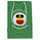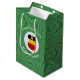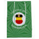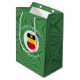 Sac cadeau moyen avec un ange portant le drapeau de l'Allemagne pour la décoration cadeau de vacances ou décoration de Noël. L'ange se trouve à l'intérieur d'une fractale circulaire blanche de carrés grossiers. L'arrière - plan est une fractale verte de carrés grossiers. Ajoutez votre propre texte ou personnalisez avec un nom et l'année. Partagez votre patrimoine allemand en cette période de vacances.