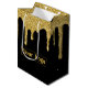 Elegant Gold Sparkle Parties scintillant Drips Sac cadeau avec de l'espace pour votre logo et votre nom sur nos gouttes de fausse parties scintillant or tendance sur un arrière - plan noir luxueux. Conçu par Cèdre et String. Si vous avez besoin d'aide ou d'articles correspondants, veuillez nous contacter à cedarandstring@gmail.com