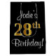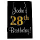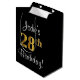 Ce design sophistiqué, luxueux et élégant de giftbag d'anniversaire comprend le numéro ordinal "28th" avec un motif dégradé faux/imitation or, ainsi qu'un message de voeux d'anniversaire et un nom de destinataire modifiable dans une police de style script. L'arrière - plan est noir de couleur. Un sac cadeau d'anniversaire sophistiqué comme celui-ci pourrait être une façon amusante d'envelopper un cadeau ou un cadeau donné à quelqu'un qui célèbre son 28e anniversaire. [~Z0000513]