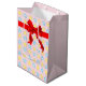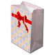 Magnifique sac cadeau avec élégant motif étoilé et ruban réseau sur arrière - plan rose. Idéal pour tous les événements tels que baby showers, anniversaires, fêtes, wedding showers, etc.