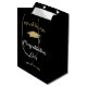 Black Elegant Gold Ornament Félicitations Graduate Graduation Sac cadeau. Sac cadeau personnalisé avec capuchon de graduation, script tendance et ornements or sur un arrière - plan noir. Félicitations et nom du diplômé - personnalisez avec votre nom.