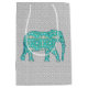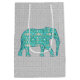 Sac Cadeau Moyen Eléphant de Fleur Mandala, Turquoise, Gris & Blanc