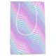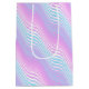 Ondes ondulées à grande échelle dans un thème rose, bleu et blanc.