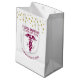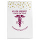 Infirmière félicitations Classe de 2019 sac cadeau avec des points de confetti en faux or sur le dessus. Symbole de caducée rouge avec les lettres R N de chaque côté.